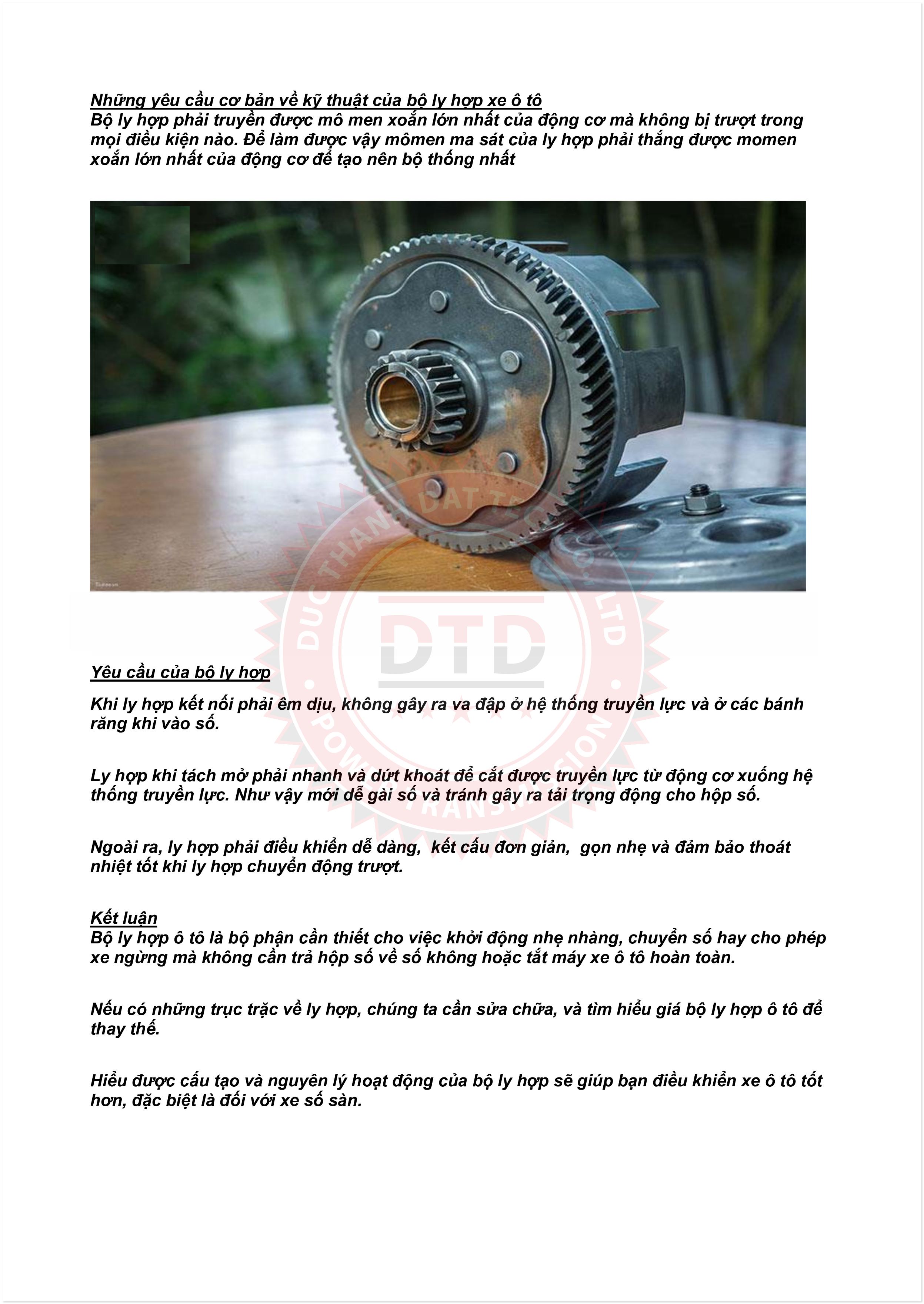 Thư mời hợp tác sản phẩm bàn ép, lá côn - hệ thống ly hợp xe ô tô